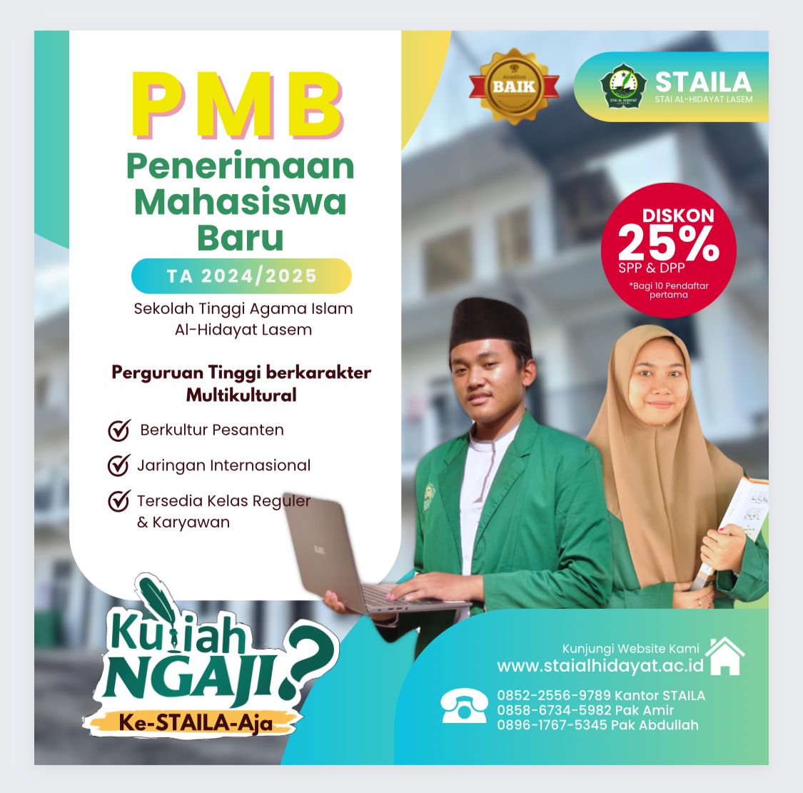Diberitahukan kepada seluruh Mahasiswa STAI Al-Hidayat, bahwa pelaksanaan Ujian Akhir Semester Genap Tahun Akademik 2024/2025 akan dilaksanakan pada hari Sabtu - Ahad, 28 s/d 29 Juni 2025 dan semua Ujian akan dilasanakan secara tertulis di dalam kelas.